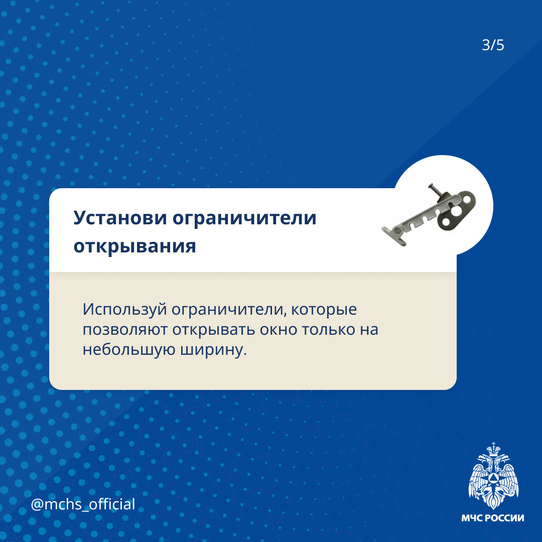 Кататравма (падение с высоты) — в 20 процентах случаев страдают дети до пяти лет – нередкая причина тяжелейших травм, приводящих к инвалидизации или смерти. Не разрешаете детям "лазить" в опасных местах (лестничные пролеты, крыши, гаражи, стройки и др.); устанавливаете надежные ограждения, решетки на ступеньках, лестничных пролетах, окнах и балконах; помните — противомоскитная сетка не спасет в этой ситуации и может только создавать ложное чувство безопасности; открывающиеся окна и балконы должны быть абсолютно недоступны детям; не ставьте около открытого окна стульев и табуреток — с них ребенок может забраться на подоконник.